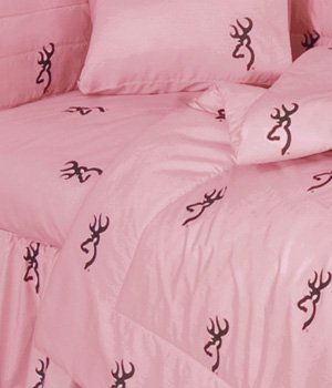 Pink Buckmark 5 Piece Crib Set and a set of (2) Window Valances - Entire set includes (Crib Fitted Sheet, Crib Bumper Pad, Crib Headboard Pad, Crib Comforter, Crib Diaper Stacker and a set of (2) Valances) - Save Big By Bundling!