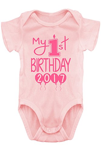 Aiden's Corner -女の子の赤ちゃん用衣服 - 女の子赤ちゃん用「My First Birthday 」の文字入りボディスーツ カラー: ピンク