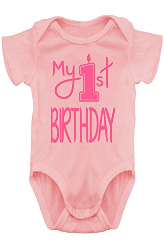 Aiden's Corner -女の子の赤ちゃん用衣服 - 女の子赤ちゃん用「My First Birthday 」の文字入りボディスーツ カラー: ピンク