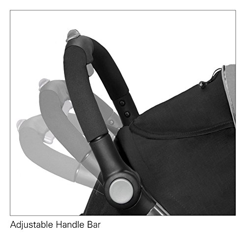 Nap friendly, full recline, lay flat position with attachable boot enclosure;Adjustable 3 position handle bar for increased stride length;Puncture proof rubber all terrain wheels with locked setting to prevent swiveling;Quick and compact one hand fold with Auto Lock for added security;Sturdy, built to last frame