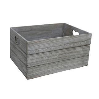 ヴィンテージ効果ハートカットハンドル木製ストレージクレート L