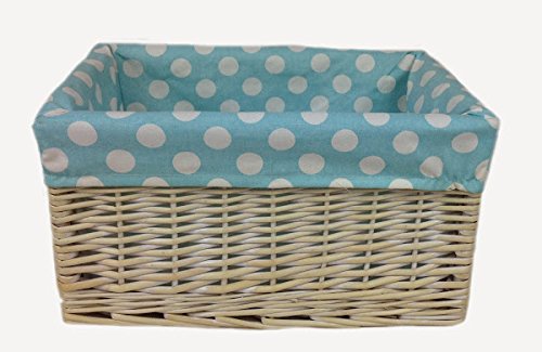 ブルーSpotty LinedウィッカーオープンストレージバスケットL