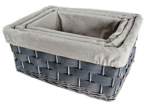 3セットambergate Storage Basket Buffウィローとホワイトウォッシュ仕上げの木の織りとコットンの裏地です。表示されているサイズは、最大のバスケット測定を開始される製品により若干異なる天然素材製サイズ長さ47 x幅35 x高さ21 cm