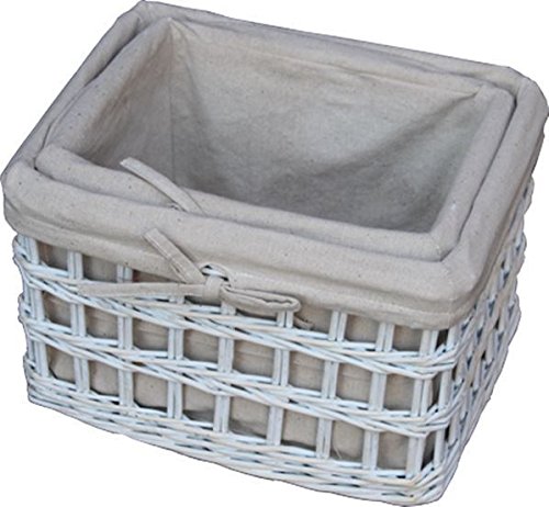 2セットProvence Buffウィローと白のウォッシュ仕上げににはコットン裏地でオープン織りストレージバスケット。表示されているサイズは、最大のバスケット測定を開始される製品により若干異なる天然素材製サイズ長さ38 x幅32 x高さ25 cm