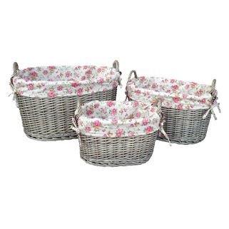 Set of 3ガーデンローズ裏地Antique Wash Ovalウィッカーストレージバスケット