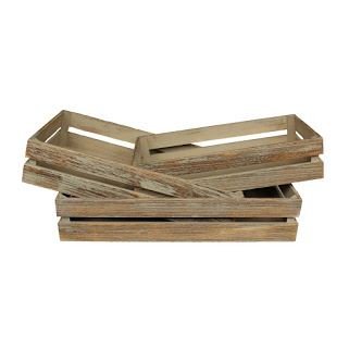 3のセットの木製オーク効果スレート浅い梱包。3つのサイズ用意されています。素晴らしいレトロな木枠。大規模な表示の作成にサイズ50 x 30 x 10 cm Mサイズ45 x 25 x 9.5 cm Sサイズ40 x 20 x 9 cm