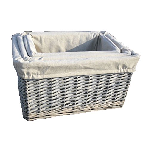 3セットProvenceストレージバスケットでBUFFウィローとホワイトウォッシュ仕上げをしました。表示されているサイズは、最大のバスケット測定を開始される製品により若干異なる天然素材製サイズ長さ43 x幅30 x高さ23 cm