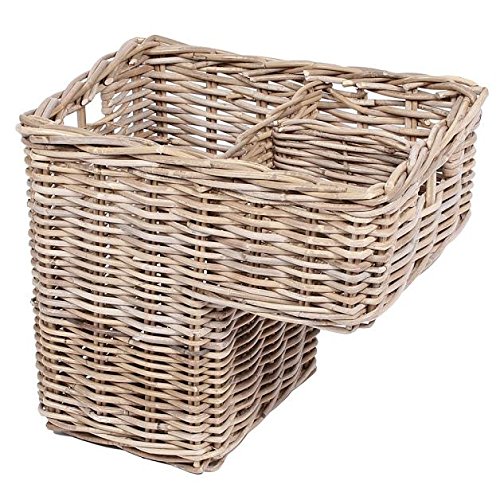ウィッカー長方形階段ステップバスケット、単一の織り仕上げで分割された上部