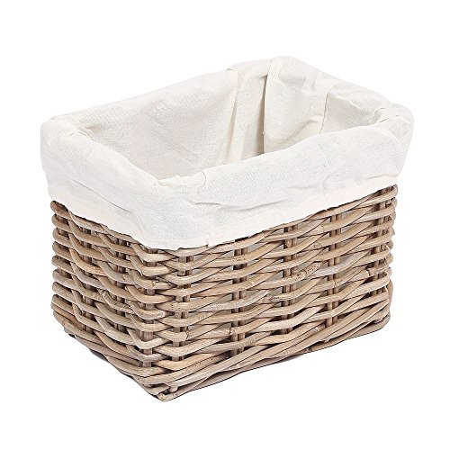 小さな長方形ウィッカーストレージバスケットコットン裏地