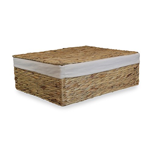 長方形のウォーターヒヤシンス編みにメタルフレームワーク取り外し可能・長さ調整可能な綿ポリエステル裏地を測定を開始により若干異なるカラーの部分は天然素材製長さ58 x幅45 x高さ20 cm