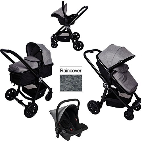 3 in 1 Travel System;Carrycot Converts into Seat Unit with easy adjustable straps;0+ Car Seat;Reversable Seat Unit - Parent Facing & World Facing;Diamond Gloss Black Chassis