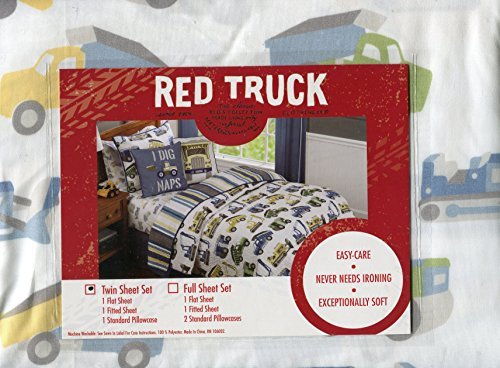 Red Truck Construction Vehicles Twin Sheet Set [並行輸入品]