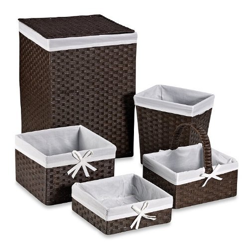Redmon 5-Piece Hamper Set with White Liners in Espresso by Redmon