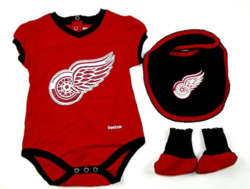 Detriot Red Wings GIRLS 3個入りクリーパー、よだれかけ、ブーティセットレッド&ブラック幼児ベビー