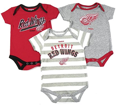 Detroit Red Wings NHL幼児ボディスーツのセット3 18m グレー