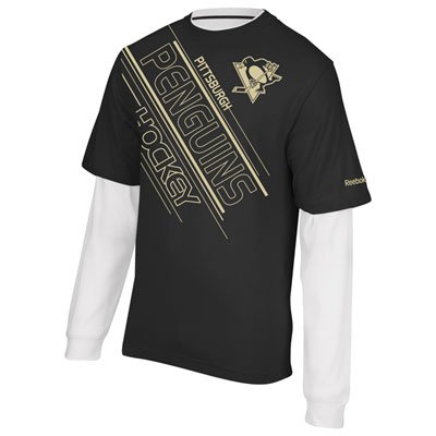 Pittsburgh PenguinsブラックリーボックFace Off Layeredスポーツ長袖Tシャツ Yth X-Large ブラック