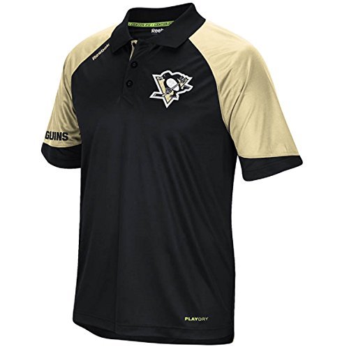 NHL Pittsburgh PenguinsブラックセンターIce Reebok Playdry合成ポロシャツ S ブラック