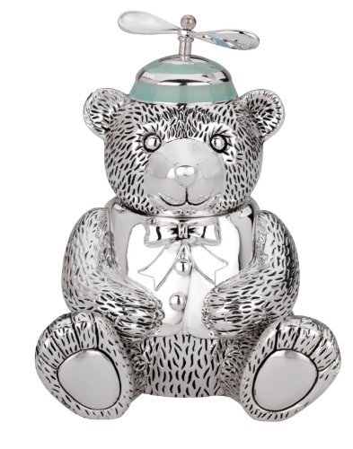 この楽しいピースを追加して、リビング空間が使用されています。シルバープレート男の子ベアの銀行がBEANIE、ブルーのエナメルと移動のプロペラです。
