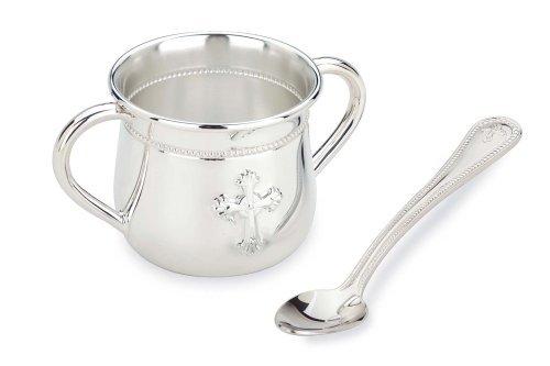 Reed & Barton Abbey Silverplated Two Handle Baby Cup and Infant Feeding Spoon Set