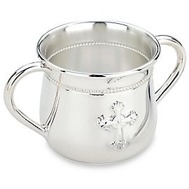 触発されたのは、修道院エレガント、アビーベビーカップカップの上部からリードのBarton機能繊細なビーズの周りを飾る装飾デザインをクロス前面に育ちました。シルバープレートに細工、このdouble-handledベビーカップはギフトボックスに新しい