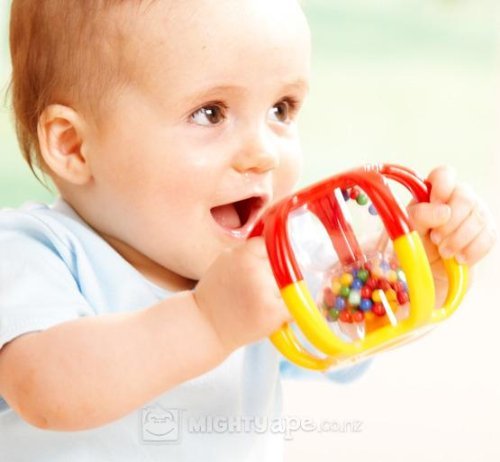 Baby loves to watch the beads fall through the rattle. Easy to hold and shake.