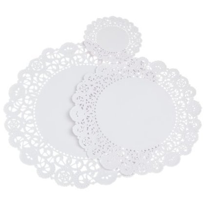 Regency Doilies are made of paper lace. Used to line cookie plates, cake plates, under cups and anywhere a touch of fancy is desired. Combo pack contains 4 each 10 inch, 8 inch 5 inch 3 inch paper lace doilies.