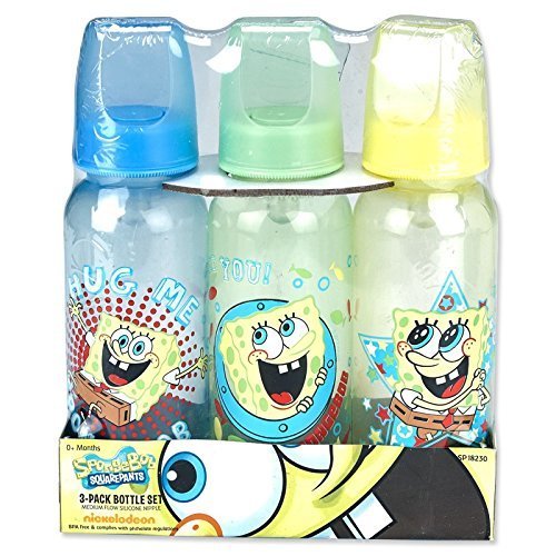 Spongebob Squarepants 9oz. Bottle 3pk, Fun Nickelodeon characters, Giggly feeding adventures, Color or pattern may vary from picture shown, For babies 0-24 months old