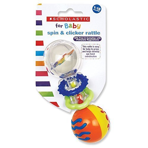 Scholastic Spin and Clicker Rattle, Spinning and clicking for a happy baby, Fun colors, shapes, and textures, Twisting, clicking, clacking, For babies 1-18 months old
