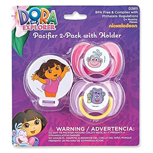Dora the Explorer 2pk Pacifier with Holder, Fun Nickelodeon characters, Calms and soothes baby, Color or pattern may vary from picture shown, For babies 0-24 months old