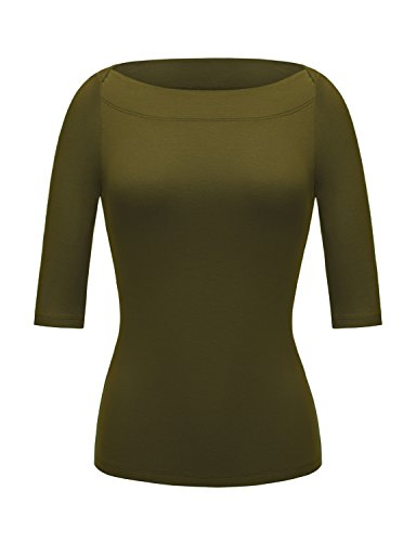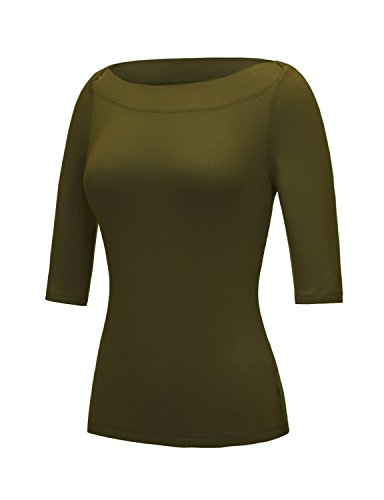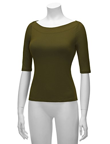 レディース半袖ボートネック、柔らかさとストレッチTシャツトップス