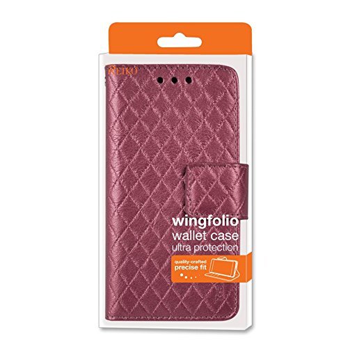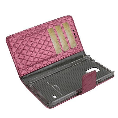 Reiko Premium Wallet Case with Media Stand, Flip Cover and 3 Card Holders for Samsung Galaxy Note 4 - Retail Packaging - Rhombus Pattern Hot Pink
