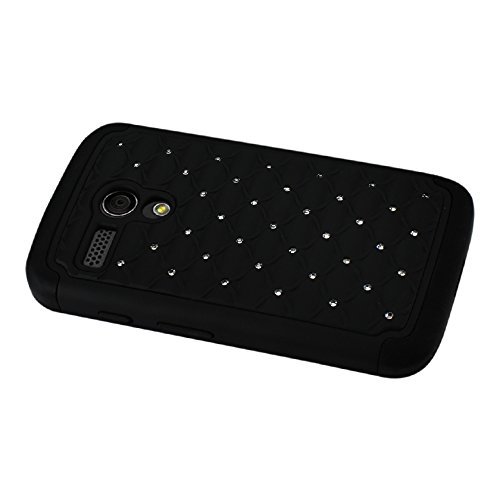 This Motorola Moto G Compatible Hybrid Diamond Decor Case is perfectly manufactured to fit and complement the mold of the Motorola Moto G. The quality material which are used for this case can provide protection. It can prevent scratches, chips and dirt from accumulating on your beautiful cellphone, and it is made from high-grade materials to complement the surface of the case. Each opening for the dock connector, charger, side buttons, speaker, microphone and camera was precisely cut to allow full access to every function the Motorola Moto G offers. This design feels really comfortable. The simple installation makes it easy for anybody to use! US carrier: Verizon, Sprint, U.S. Cellular, Boost Mobile