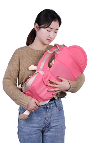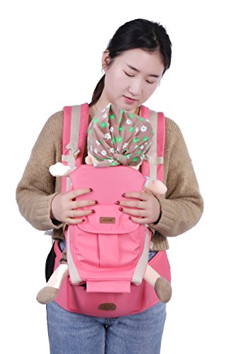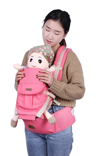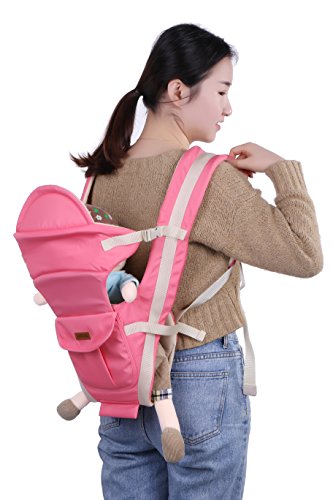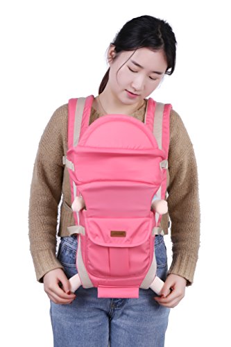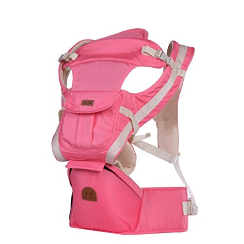 「Rein」のヒップシート付きおんぶ紐は 成長に合わせていろいろな使い方が出来ます 腰ベルト、ウエストポーチ付き 胸元でクロスせず、胸を圧迫しない ピンク