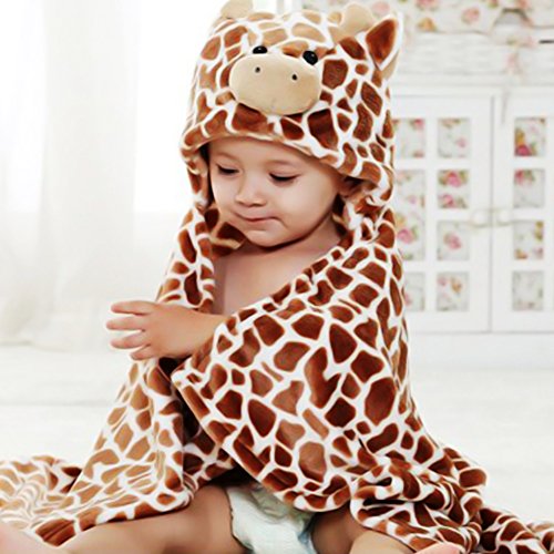 Relief and trust 赤ちゃん タオル ベビー 毛布 タオル こども ポンチョ アニマル かわいい キュート さらさら ふわふわ フード付き (きりん)