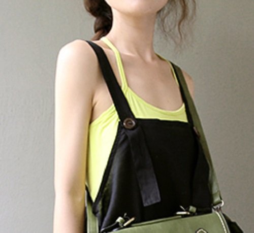 - ・シンプルデザインでインナーや羽織りが楽しめるサロペット♪
