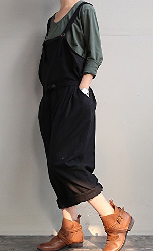 (リライト) RELIGHT ゆったり 大きいデニム マタニティ サロペット オールインワン 妊婦 ママ カジュアル マタニティー オーバーオール 服 ブラック (L, 黒)