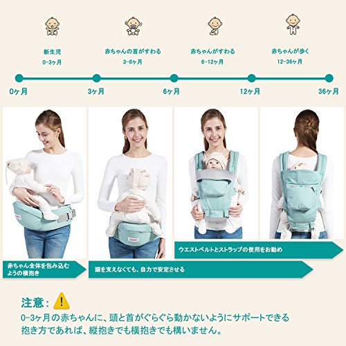 - ◆【12種類の安定した抱き方~ 0-36ヶ月まで対応!】ヒップシート、ベビーキャリア、3種類の組み合わせ方で12種類の安定した抱き方があります。0-3ヶ月の新生児に、赤ちゃん全体を包み込むような横抱きをお勧めします!3ヶ月以降のお座りにも対応するヒップシート付!赤ちゃんの成長により対面抱き、腰抱き、おんぶ、前向き抱きがこれですべて楽々にできます!