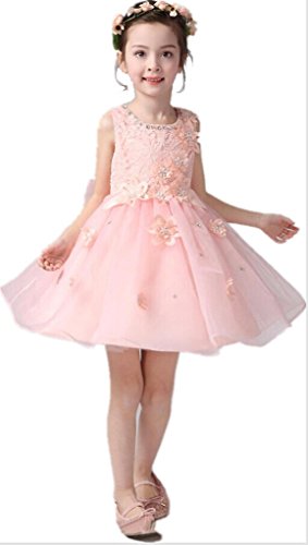 Remeehi 【子供ドレス】 ワンピース女の子ドレス ガールズワンピース 可愛い チェリー柄 発表会 結婚式 入園式 演奏会 パーティー 春夏 ベビー 子供 ノースリーブ ドレス フォーマル ワンピース (ピンク 130)