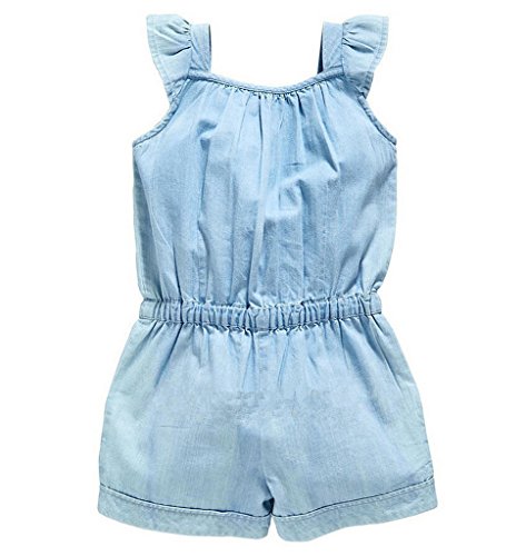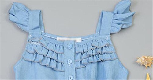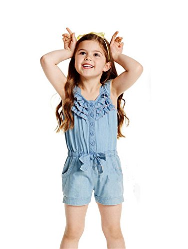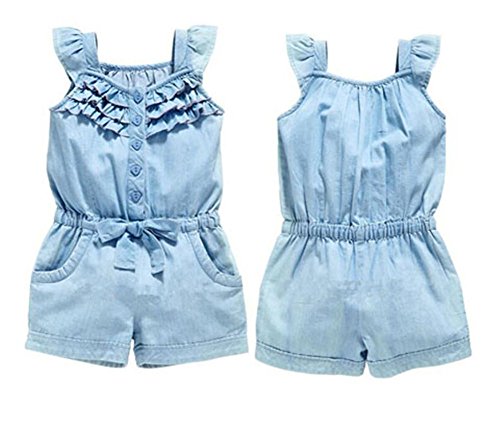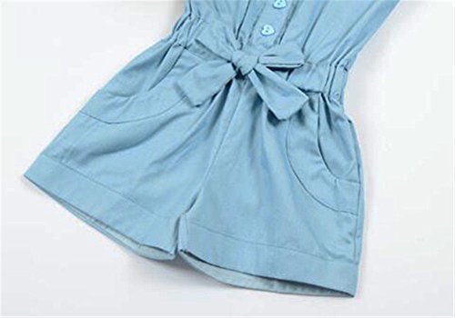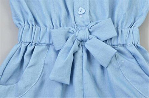 Remeehi カバーオール キッズ服 子供服 蝶結び フルリ ノースリープ 女の子 ボタン付き ポケット付き 薄いブルー 90cm