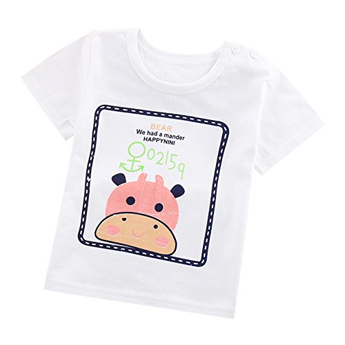 Remeehi Tシャツ ベビー 半袖 子供服 丸首 ボタン付き 女の子 男の子 トップス 柔らかい 動物柄 春夏 牛柄