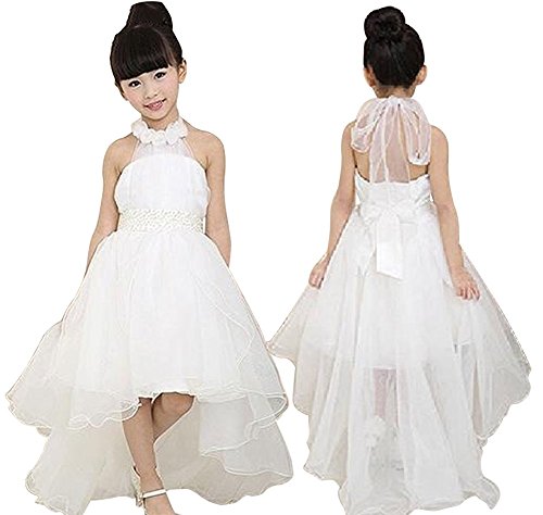 子供ドレス キッズドレス ワンピース 女の子 ガールズ フォーマル お姫様柄プリントのオーガンジープリンセスドレス ホワイト 110cm 120cm 130cm 140cm 150cm (120cm)