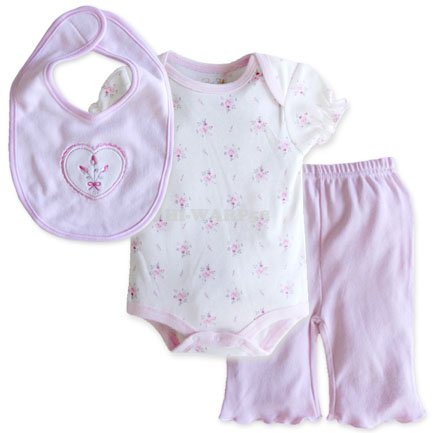- かわいい小花柄のロンパースとスタイ、パンツの3点セットで出産祝いなどのギフトにもオススメです♪