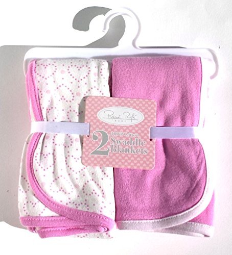 Rene Rofe Baby Swaddle Blankets Pink & White with Pink Hearts Set of 2 by Rene Rofe [並行輸入品]