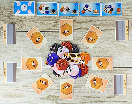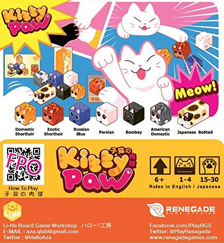 What happens when seven cats run into cardboard boxes? Well, a crazy game of kitty hide-and-seek! Kitty Paw is a dexterity and reaction game. Players try to be the first to complete the kitty combinations shown on the Kitty cards to score victory points (