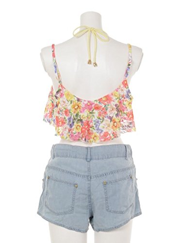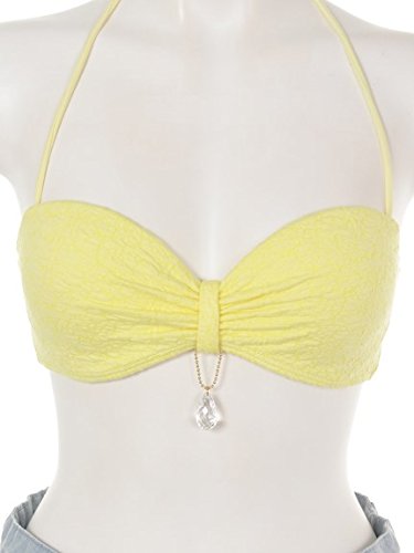 リボンモチーフのブラとサイドフリルがポイントになったショーツのスイムウエア。イレギュラーヘムとフレアシルエットが可愛い、キャミソール&デニムショートパンツをセットにしたスペシャルなセットアイテムになっています。自分らしくアレンジして着こなせるのも魅力♪