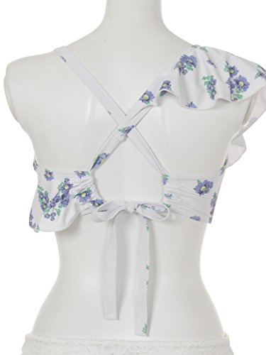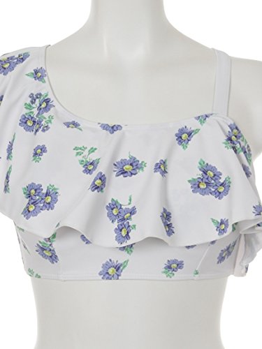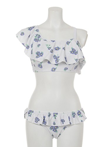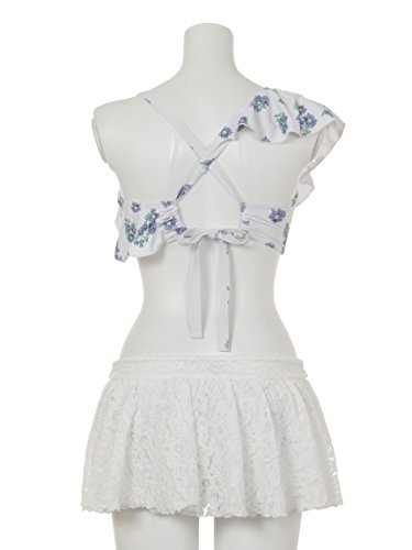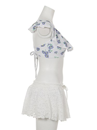 可愛らしいフラワー柄をあしらった、大人フェミニンなワンショルダービキニが登場。ひらめくフリル使いに、女の子心がくすぐられます。スウィートなレーススカパンがセットになっているのも◎。