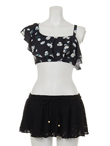 Resort Island (リゾートアイランド)フラワーワンショルダーレーススカパンセット クロ M