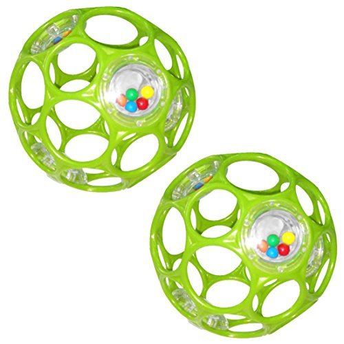 28 finger holes make this ball easy for baby to grasp;4 rattles with colorful beads make fun sounds as baby shakes this ball;Smooth, flexible patented design makes the Oball soft and captivating for little hands;4 diameter; 2 Pack;BPA, PVS, latex and phthalates free