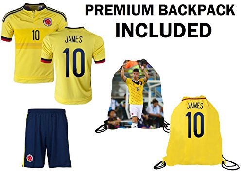 Columbia Kids Jersey James # 10 ✓ Falcao # 9 Youth 3 in 1サッカーギフトセット✓サッカージャージー✓ Shorts ✓ドローストリングバッグ YS 6-8 years イエロー