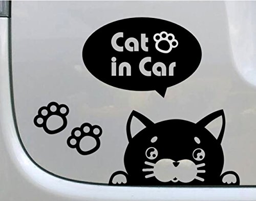 覗き込む ネコ 猫 吹き出し付きカッティングステッカー赤ちゃんカーステッカー (Cat in Car, 黒)